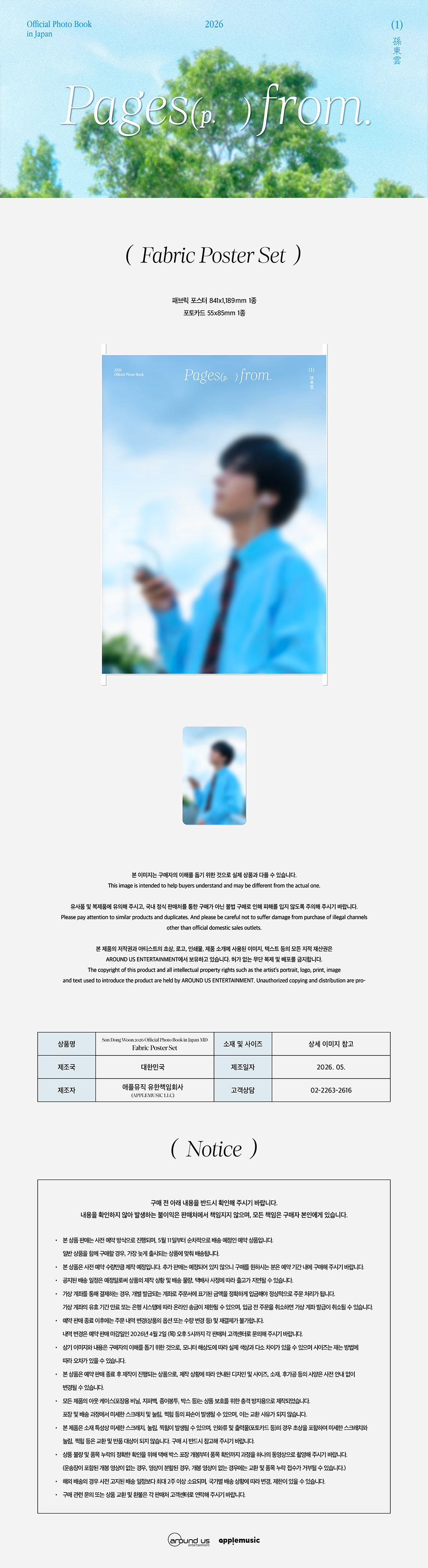 - SON DONGWOON OFFICIAL PHOTO BOOK [Pages From] MD / Fabric Poster Set